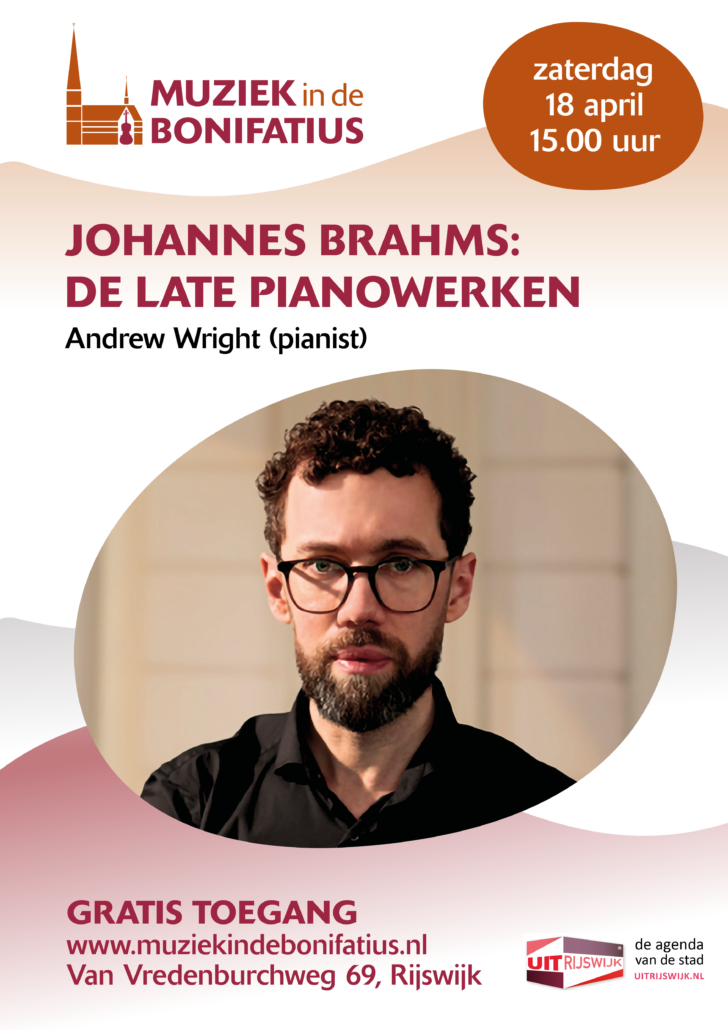 Wijziging agenda: Op zaterdag 18 april speelt pianist Andrew Wright een Brahms-programma, hij vervangt de geblesseerde Marta Liébana Martínez.